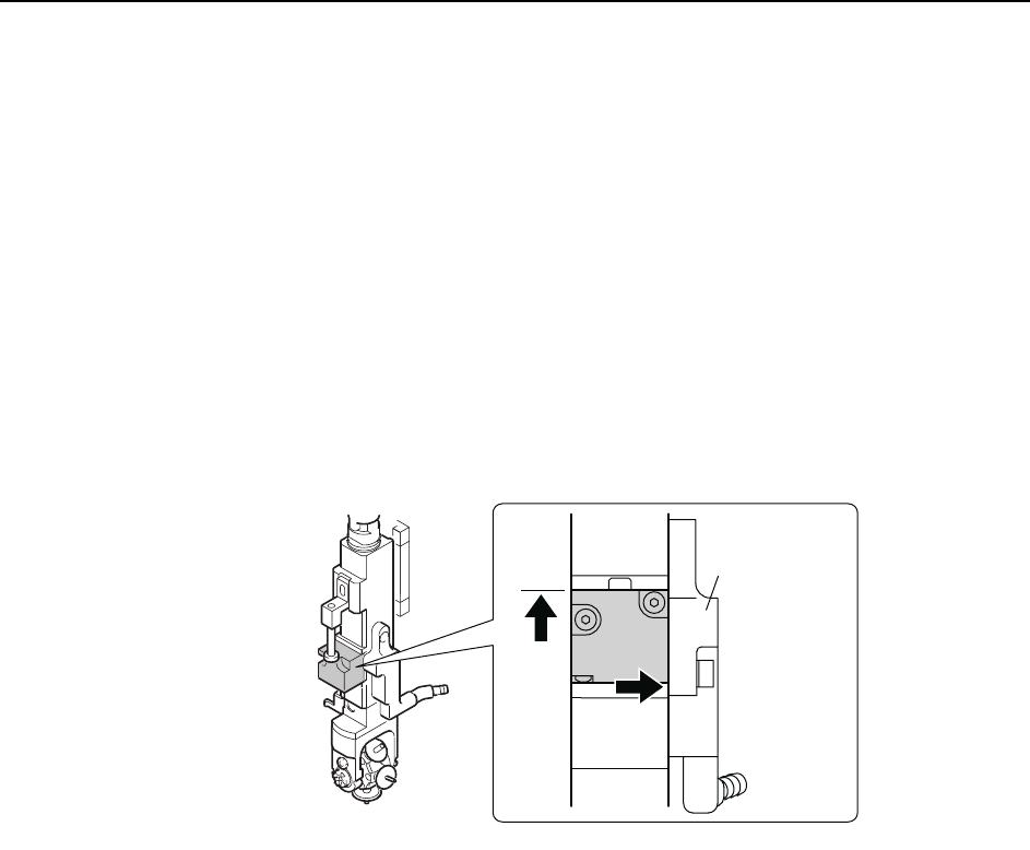 Adjustments >> Station Adjustments MEC-CP842-1.0E 7-41 1 Press the EMERGENCY STOP button to take the 200V down to 100 V . 2 Use the inching keys to move the Low valve head to ST12. 3 Remove the mechanical valve fro…