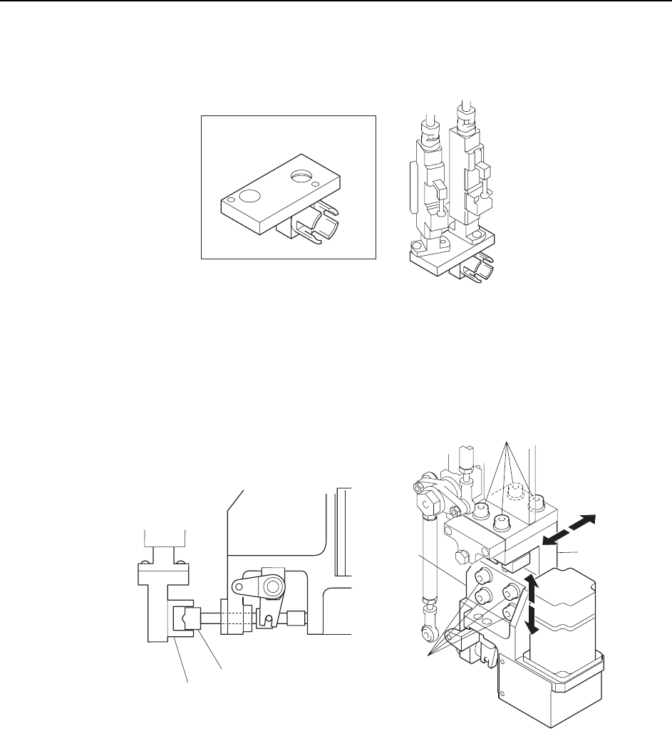 6 Attach the adjustment jig to the placing heads at ST14 and 15.