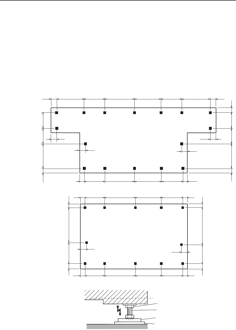 1 Position the leveling sheets or the leveling blocks as shown in the figure below.
