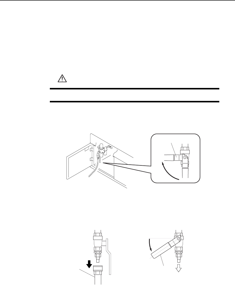 1 Close the air inlet valve lever and cut the external air-supply.
