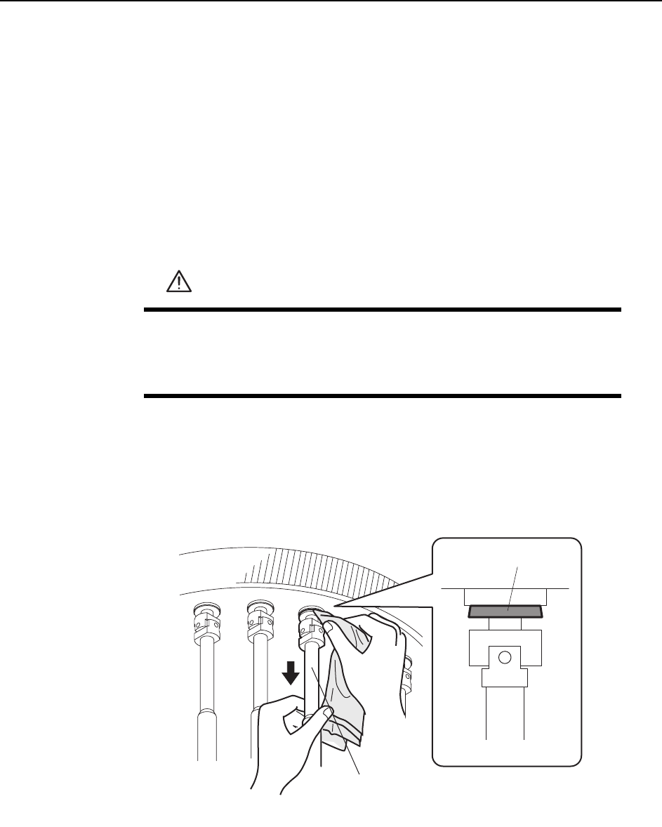Maintenance >> Cleaning MEC-CP842-1.0E 5-13 5.1.1 1 T apered Clutch on the Nozzle Indexing Shaf t (Monthly) Point After extended periods of operati on, grease may adhere t o the tapered clutch of the nozzle indexin…
