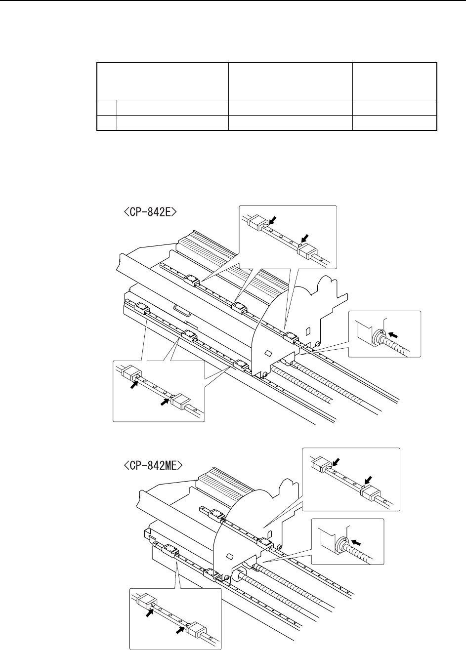 Maintena nce >> Lubrication 5-32 MEC-CP842-1.0E 5.2.12 Lubricating the D-axis Carriers Arrows in the illustration indica te lubric ation points. Black arrows indicate that a grease gun is required. C746M3T10 30 31 …