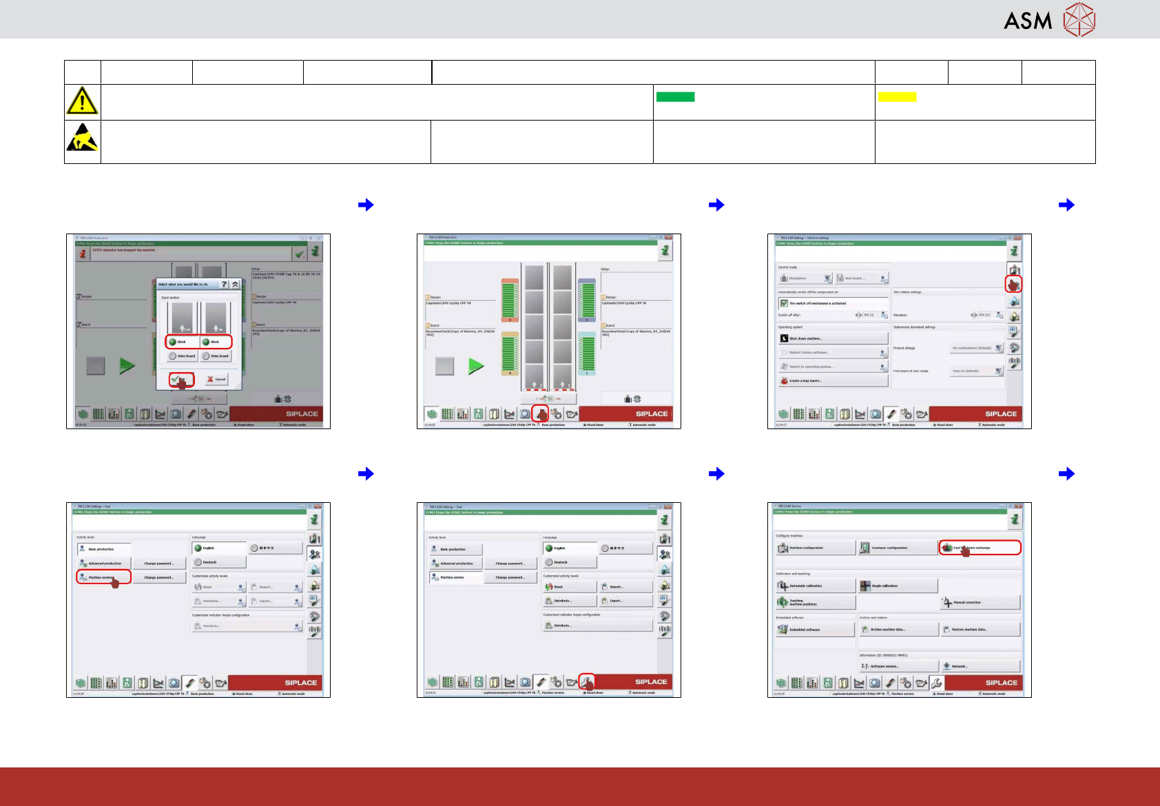 13 WF2 X_系列 S 校准 C&P20 A/P 贴片头 14分钟 2 / 5 注 意 开 始 维 护 前 , 请 参 阅 用 户 手 册 中 的 安 全 说 明 贴片机状态开启 传送系统空 注意!遵守防静电守则 工具: T2、T4 易损件: 耗材: www.asm-smt.com 7 阻挡两个轨道并点击“确定”图标。 8 点击“Settings and Options(设置和选 项)”图标。 9 点击“User Set…