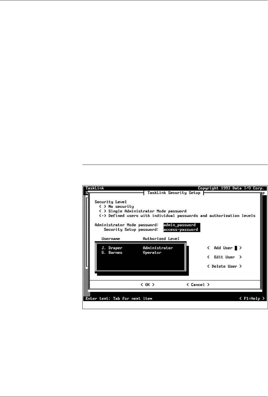 Note: The security system used by TaskLink is DOS based, and is thus restricted