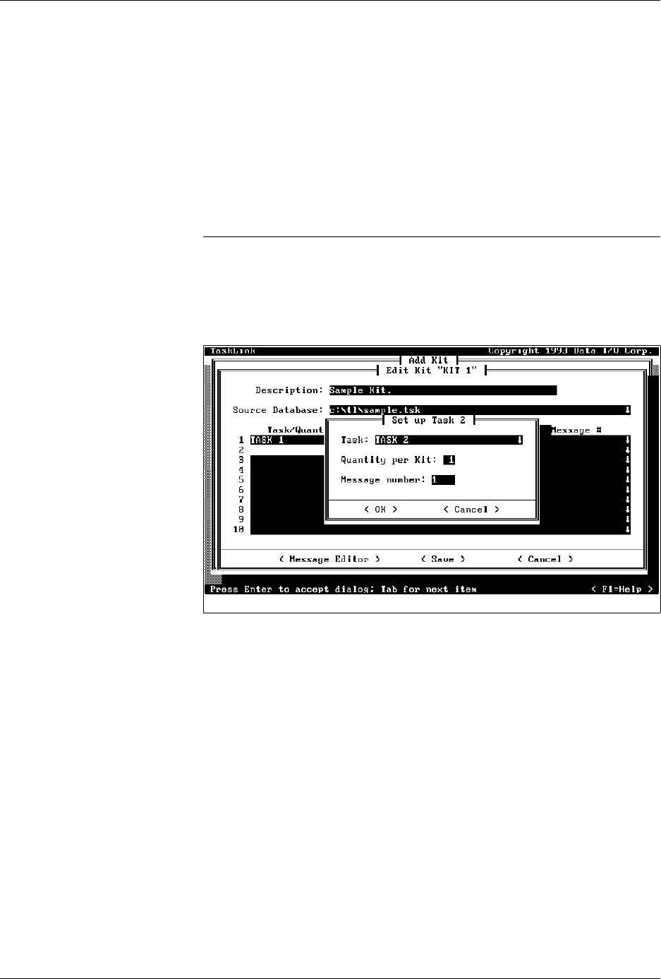 Type the message you want TaskLink to display on the screen to prompt