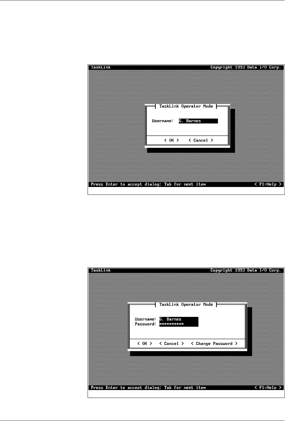 screen you see after starting TaskLink is a security screen (see Figure 4-3).