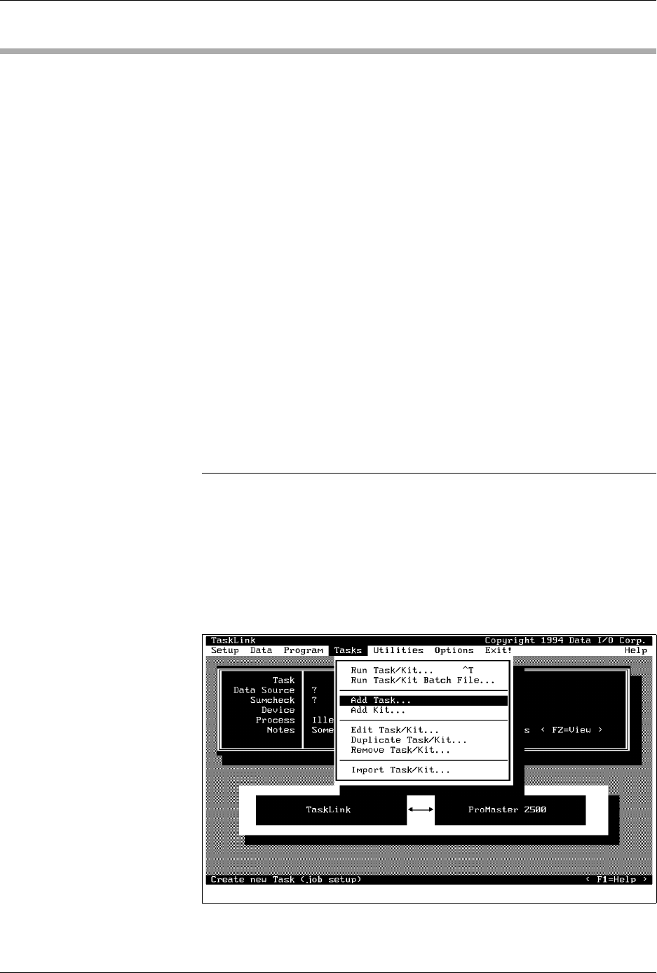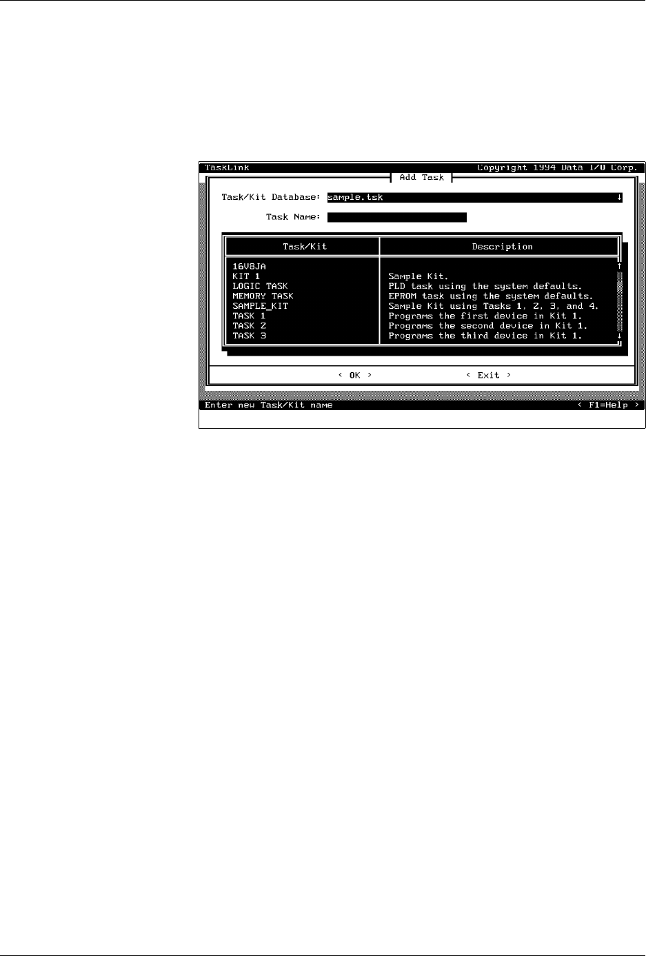 Task s and Ki ts ProM aster 25 00 User Manua l 3-5 Use the arrow ke ys (or press A ) to highl ight the Add T ask option , and press ↵ to select it. The Add Task dialog box appears (see Figure 3-3) with the cursor in th e…