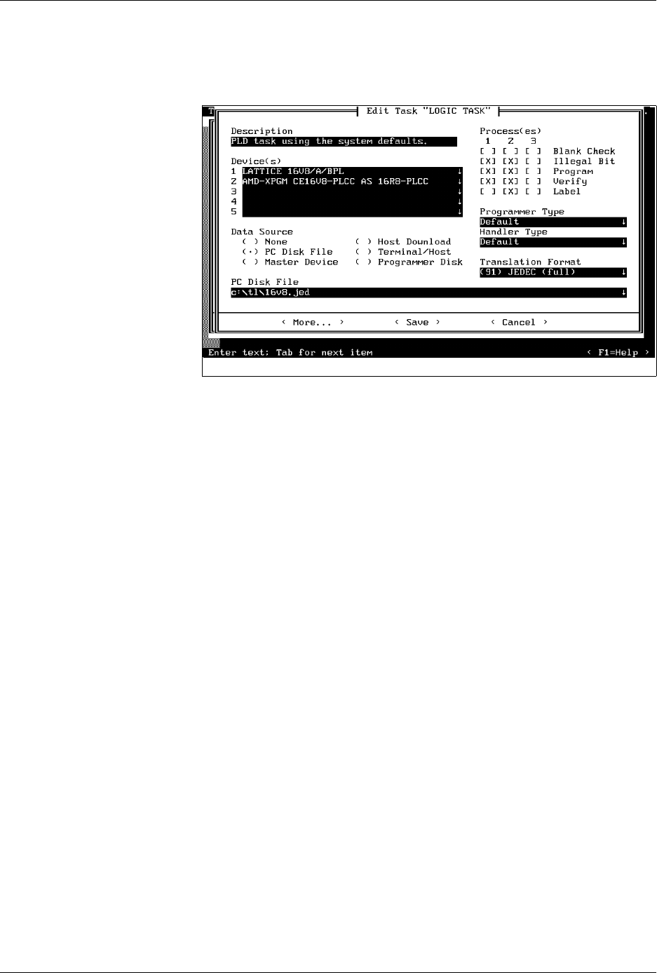 characters, appears in the Task/Kit list box. Operators can refer to it as