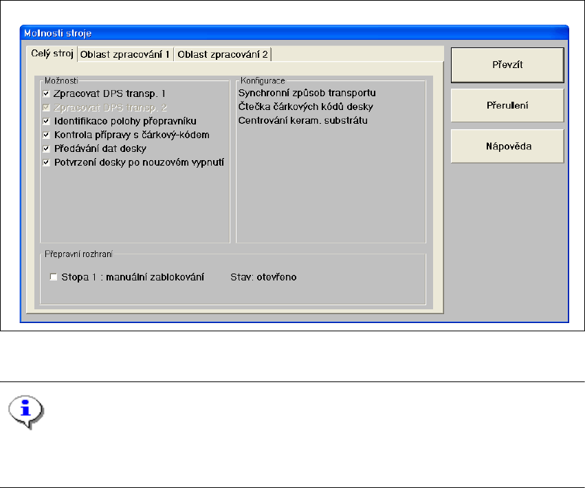 Æ Klikněte na položku menu Možnosti stroje ... (nebo na příslušné tlačítko v pracovní oblasti