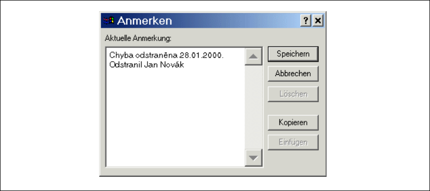 Ve všech náhledech pro informace o chybách můžete ukládat poznámky a můžete je popř.