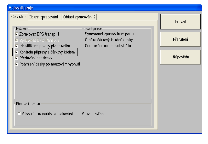 Obr. 7.6 - 1 Dialog: Možnosti stroje - Kontrola p