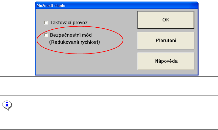 Možnost „Bezpečnostní mód (redukovaná rychlost)“ je k dispozici jen na úrovních obsluhy