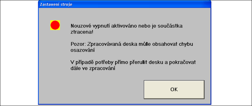 Pokud během osazování dojde k nouzovému vypnutí (tlačítko Nouzové vypnutí, pokles