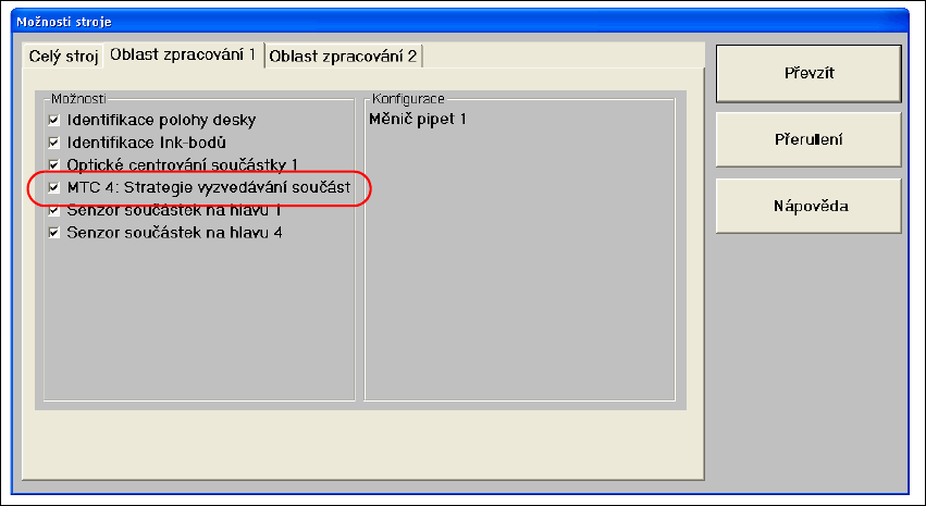 Nastavení možnosti stroje platilo pro všechny MTC přistavené ke stroji. 8