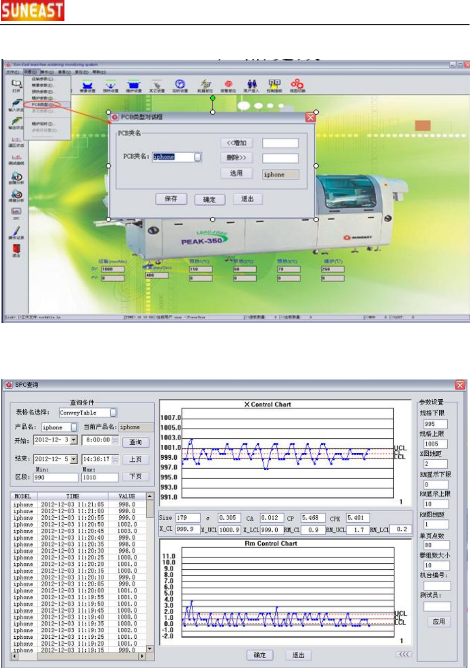 (3):SPC 查询:表格名选择:ConveyTable、SolderTable、Preheat1Table 等;产品名:iphone;开