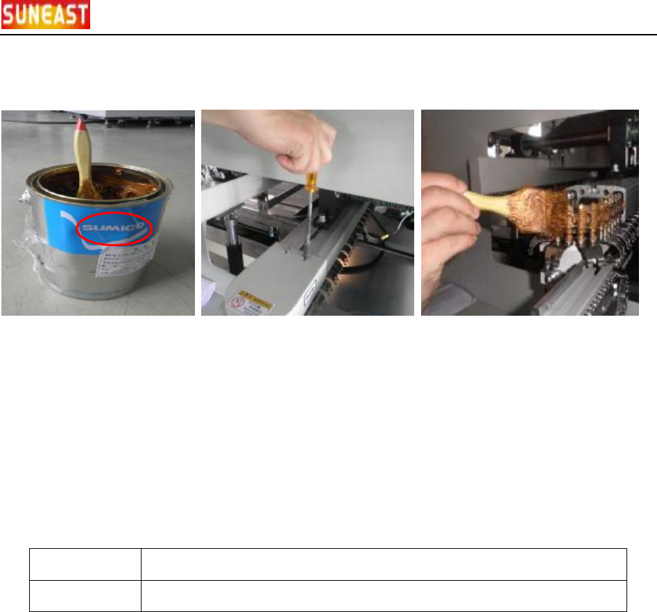 (4) 用毛刷将高温机油均匀地涂在左右运送链条各轴承位置上,如图二所示。