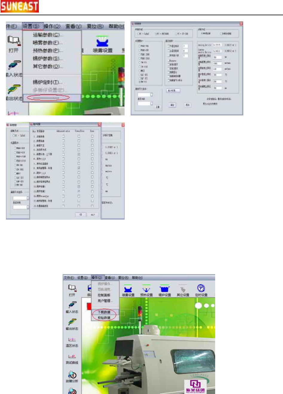 电 脑 波峰 焊 用 户 手册 26 / 7 3 5> 下 载 数 据 。 将 当 前 所 有数 据 下 载 到 控 制 器。 6> 校 验 数 据 。 检验 数 据 是否 有 错, 有 错 重新 下 载 , 直 到 无 误。 suneast production