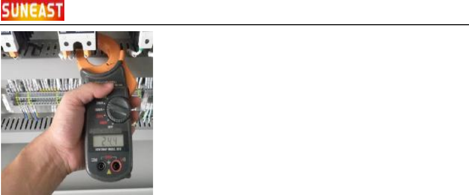 重新检查电路,确定接线正确,接通电源试机并用钳形电流表确认,如图八、九所示。