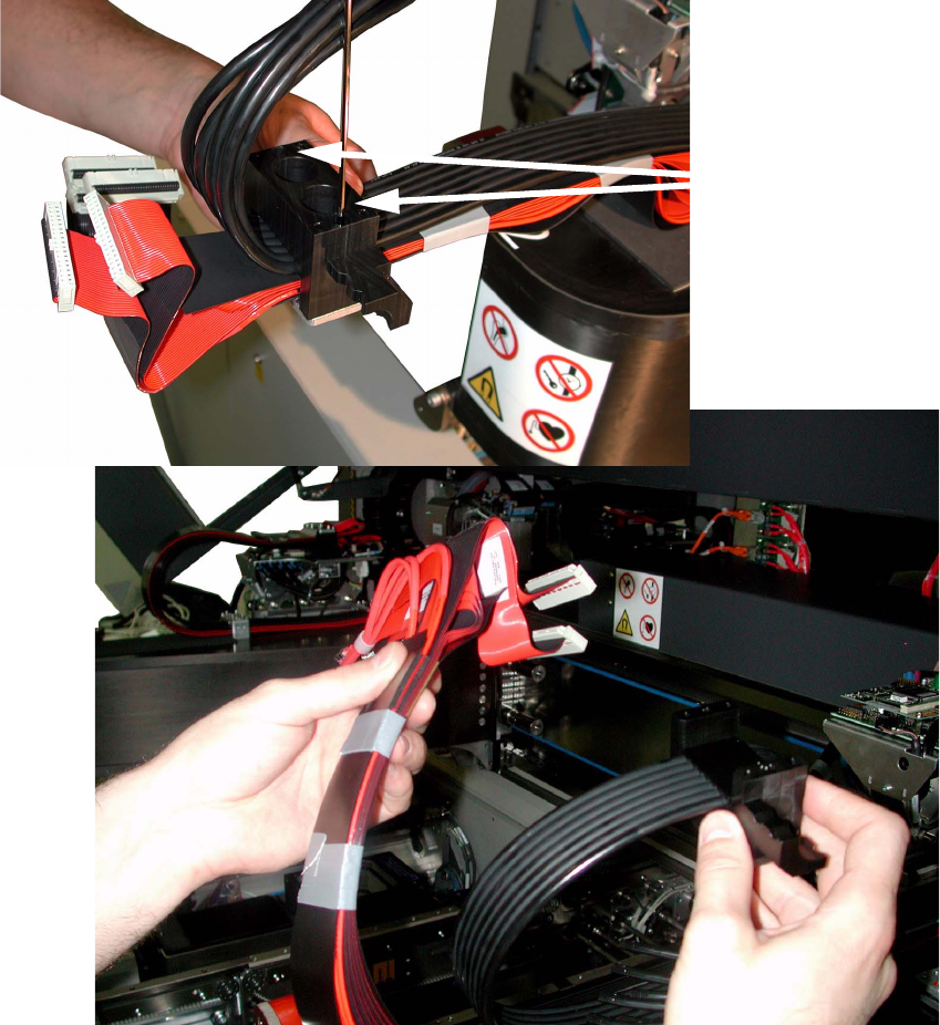 Nachrüstanleitung 7-fach-Schlauch SIPLACE HF-Serie / X-Serie / D3 Ausgabe 10/2008 19 : Sichern Sie Flachbandkabel und Schutzfolien nochmals mit Klebeband gegen verrut schen. Dieses dritte Klebeband wird vor der Mon tage …