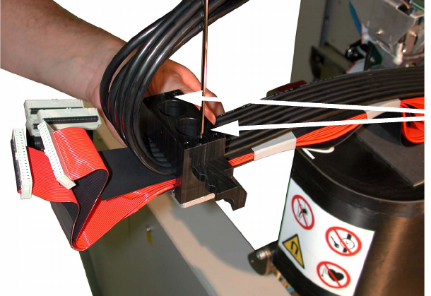 : Lay the ribbon cables together with the hoses and the new pressure plates in the upper clamp.