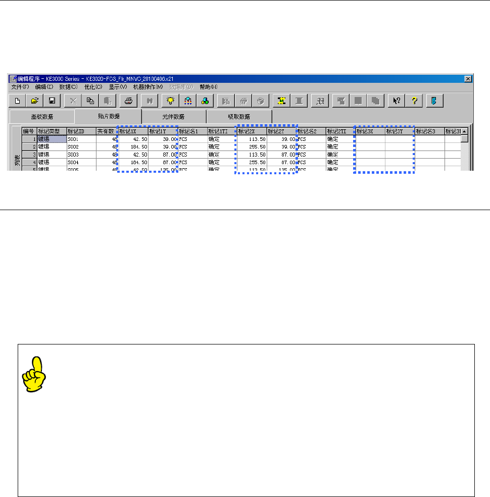 把标记类型设置为 [镀锡] 后,在标记坐标值(标记 X、标记 Y)框里输入 2 点或 3点需要识别的