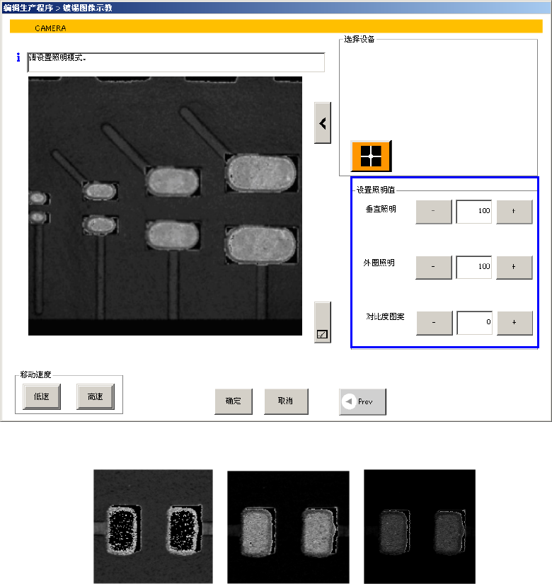 对比度图案,是变更摄像机感应度的参数。调整照明无效时,要选择能使镀锡印刷与基