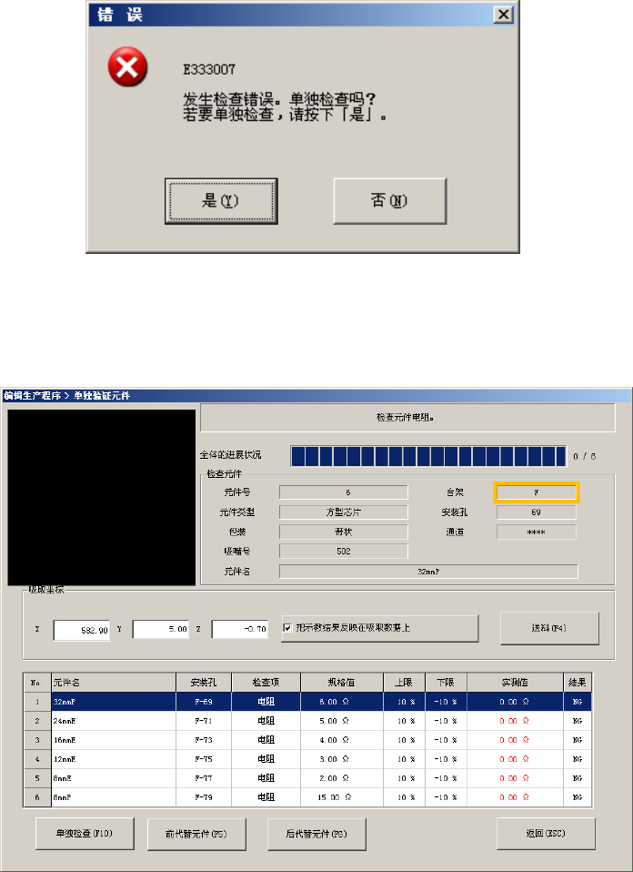 此时不使用的轴的吸嘴外轴,或吸嘴外轴反射光进入 VCS 摄像机,就不能正确地进行图像识别。