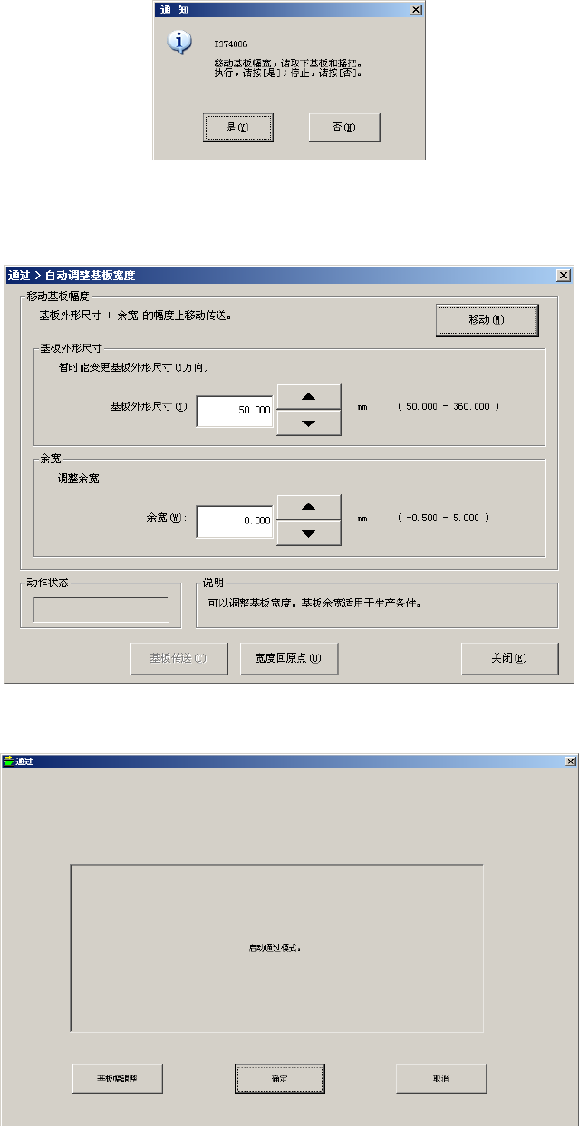 全轴退避后,显示「询问调整基板宽度提示信息」画面。