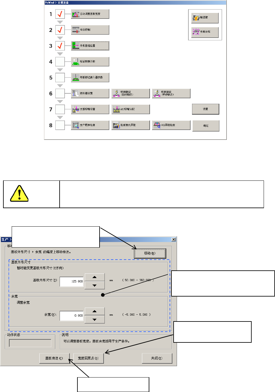 按下画面 1「自动调整基板宽度」按钮,即可显示出“自动调整基板宽度”画面。