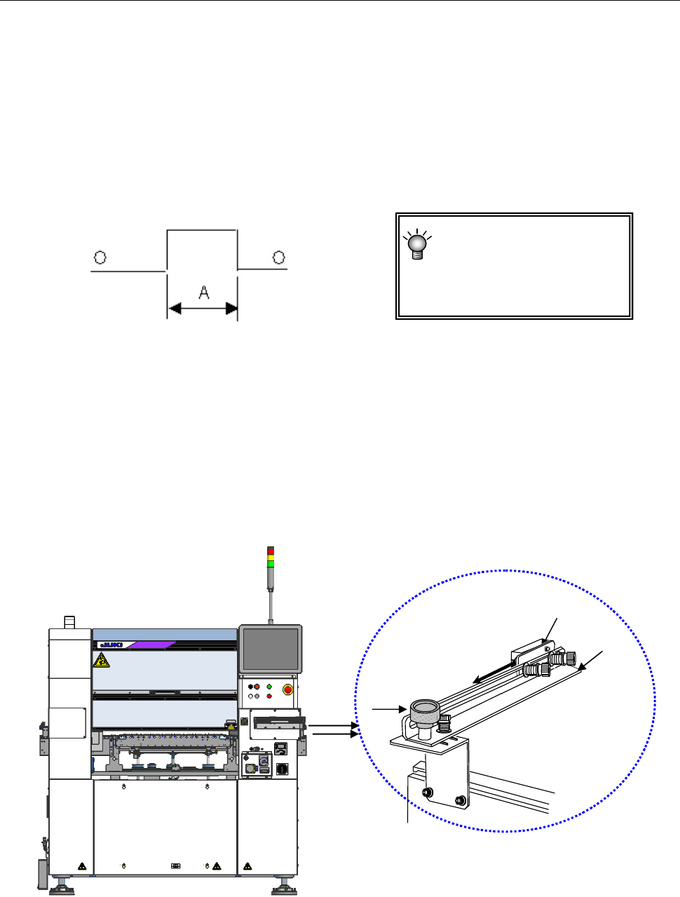 第 1 部 基本篇 第 2 章 生产 2-36 2-7-1-6 其他调整 使用带有缺口的基板时, 基板检测传感器可能检测出错误, 所以应根据基板缺口的大小, 输入基 板传送传感器延迟时间。 此外,在使用异形基板等时,可以更改挡块⑩和基板检出传感器的位置( Y 方向)。 (1) 基板传送传感器的延迟时间 < 设置步骤 > 1) 请选择「生产程序-基板数据」或「机器设置」中的 “ 基板传送设定 ” 。 2) 根据基板缺口的长度,…