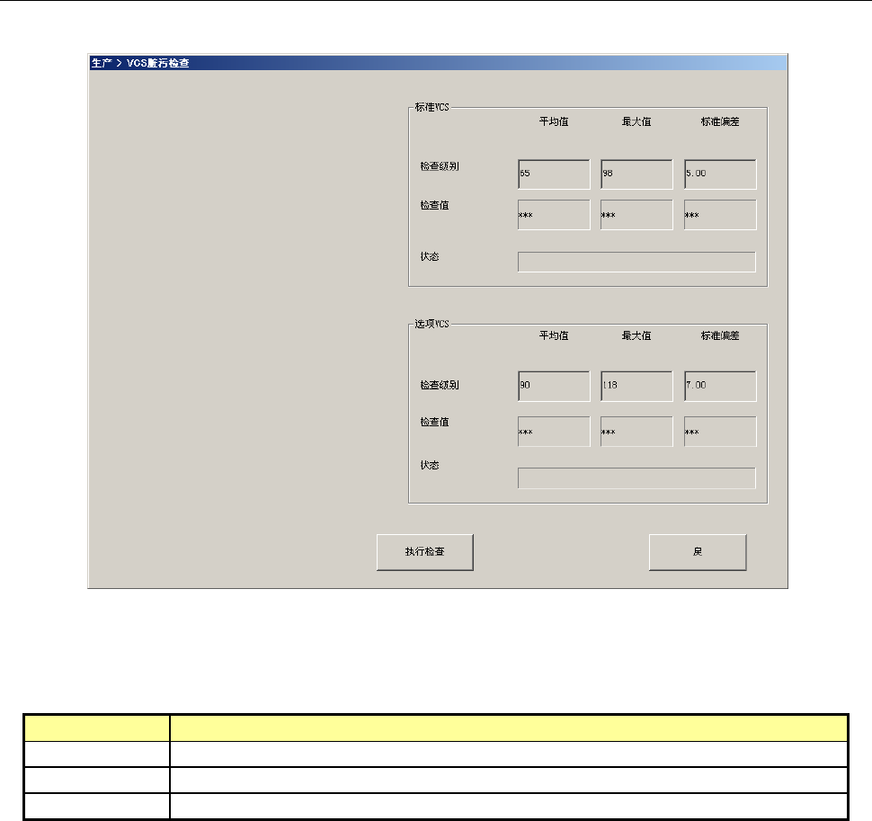 显示各 VCS 的检查级别与检查值、显示判定的脏污(状态)。