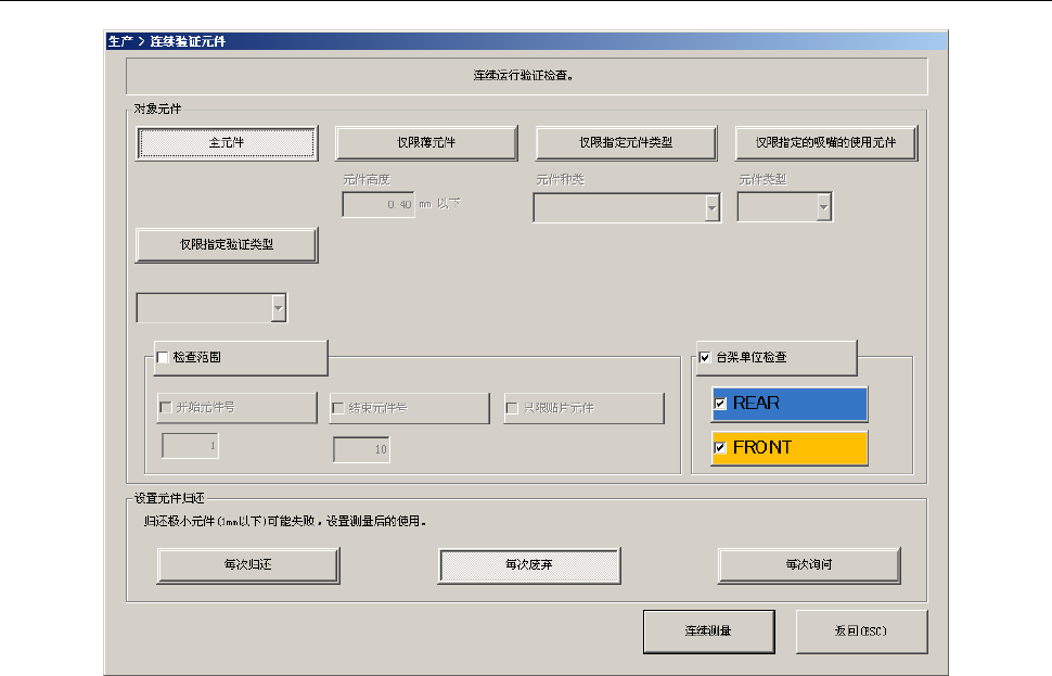 连续检查中会显示正在检查的元件内容,逐次显示执行中的进展状况和检查结果。