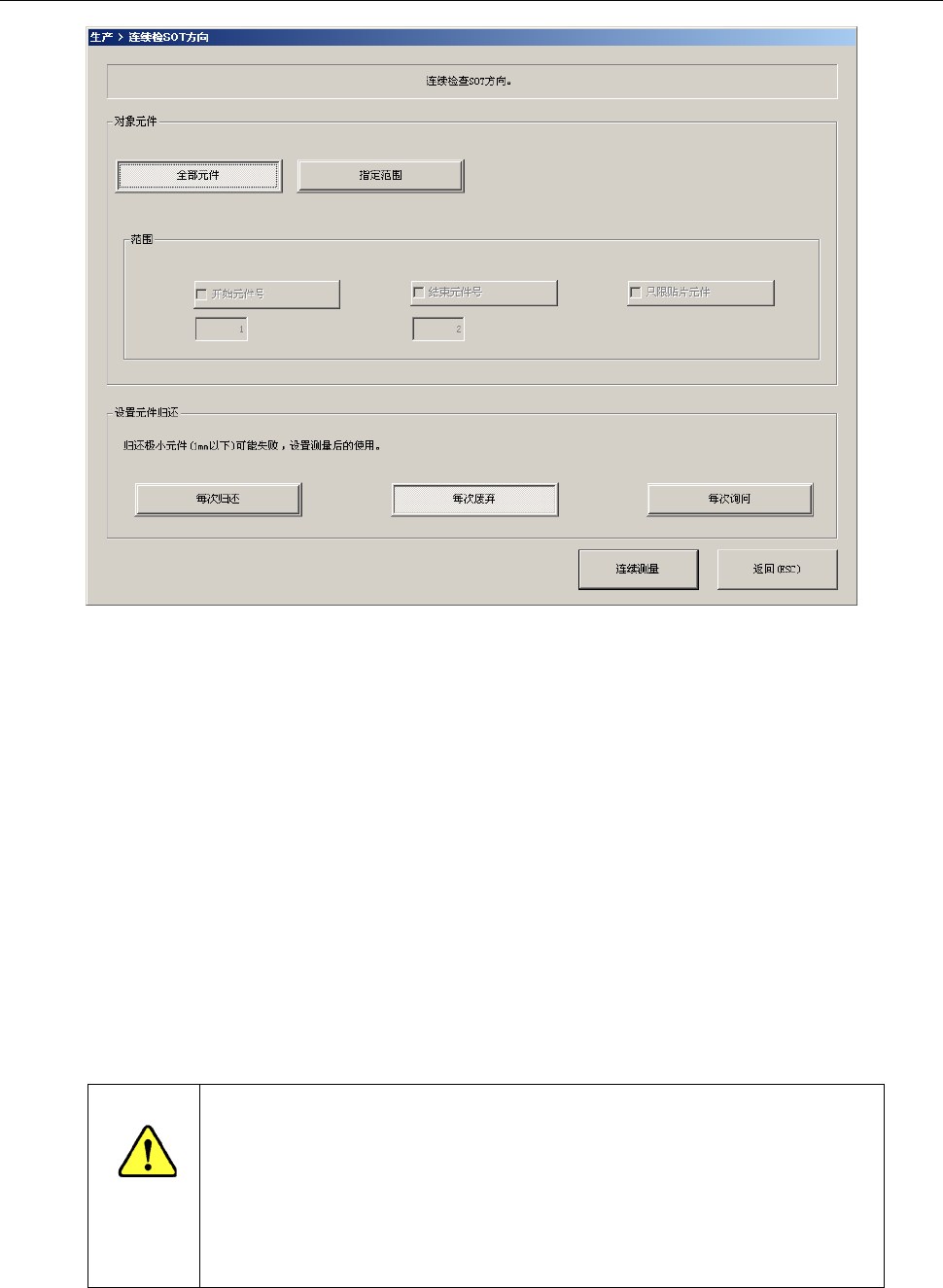 在按下「连续测量」前,请务必确认无人在进行设备内部的作业。