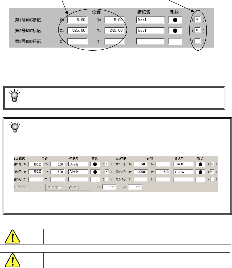 输入从基板位置基准(原点)或电路原点到各BOC标记的中心位置的尺寸。