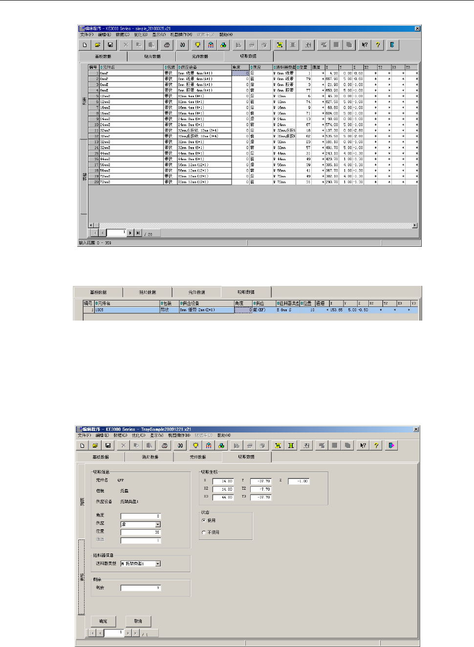 可在表格画面中编辑“角度”、“供应”、“位置”、“通道”、“吸取坐标”、“状态”、“供料器类型”、“剩余”