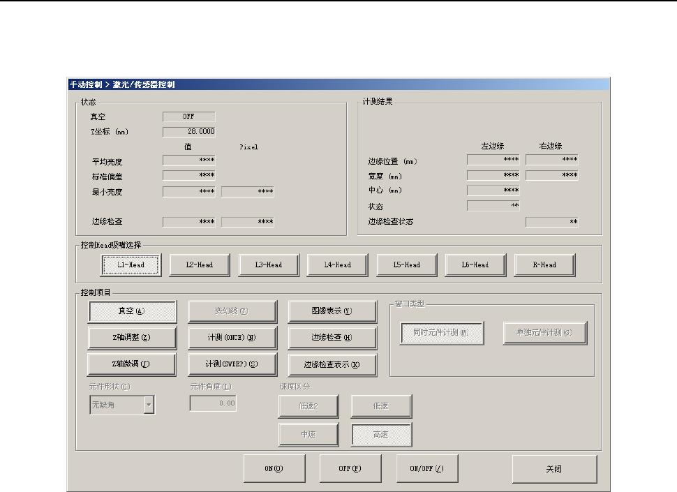 从下拉菜单中选择[Head(D)]-[激光/传感器控制(L)]或选择命令按钮的[激光/传感器控制],显示如下