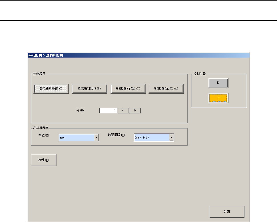 在下拉菜单中点击[供料器(E)]-[送料针控制(N)]、或从命令按钮中点击[送料针控制]后,可显示送料针