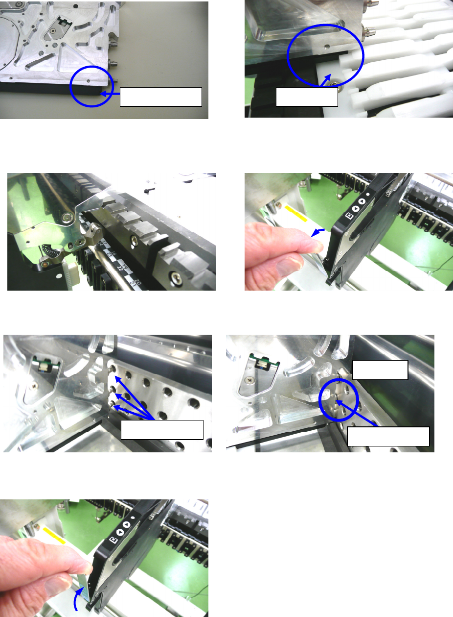 6) 请用力推供料器,直到导向销 F 顶住台架抵接面。