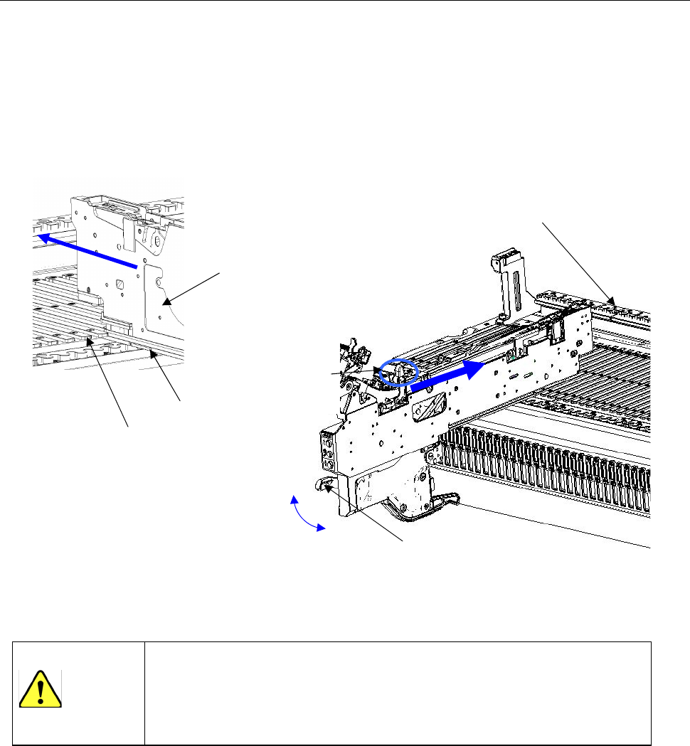 如在 XY 轴或 Head 正在动作时进行更换,托盘支架可能会接触到动作元件,