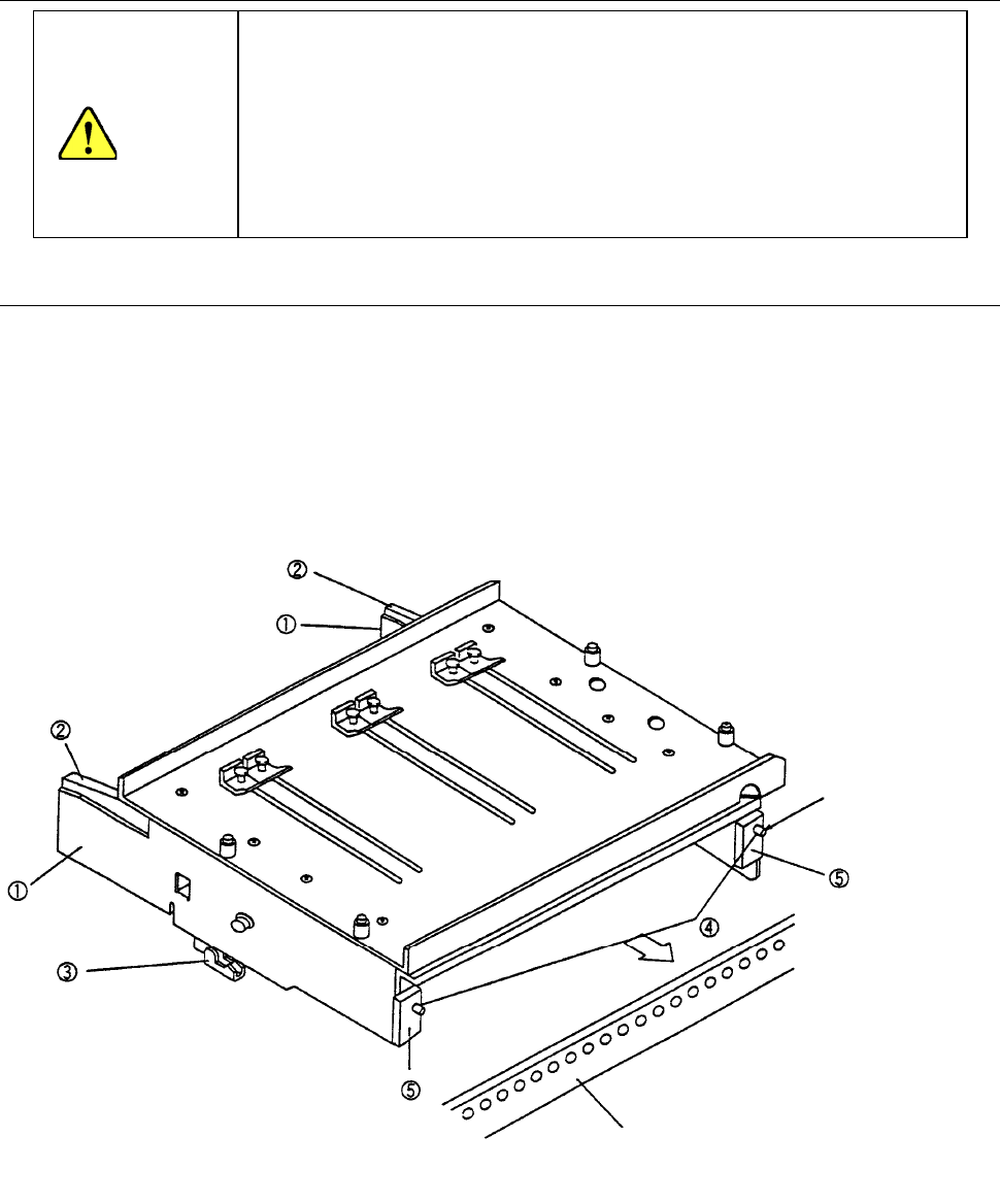 第2部 功能详解篇 第1 3章 选项组件 13-19 13-3 矩阵、托盘支架 13-3-1 机械台架用 多托盘支架 ※ 装卸作业,务必先在装置主机上把供料器安装妥(台架上升状态)后,再进行操作。 1) 握住边板①和托盘锁紧杆②,打开锁紧支架③。 2) 在后侧送料器台架的固定板上插入前面的销④。 3) 在销④插入且前板⑤顶住固定板的位置上,放开边板①和锁紧杆②,用锁紧支架③固定。 4) 拆卸时请按照相反的步骤进行。 如在 XY 轴或 H…