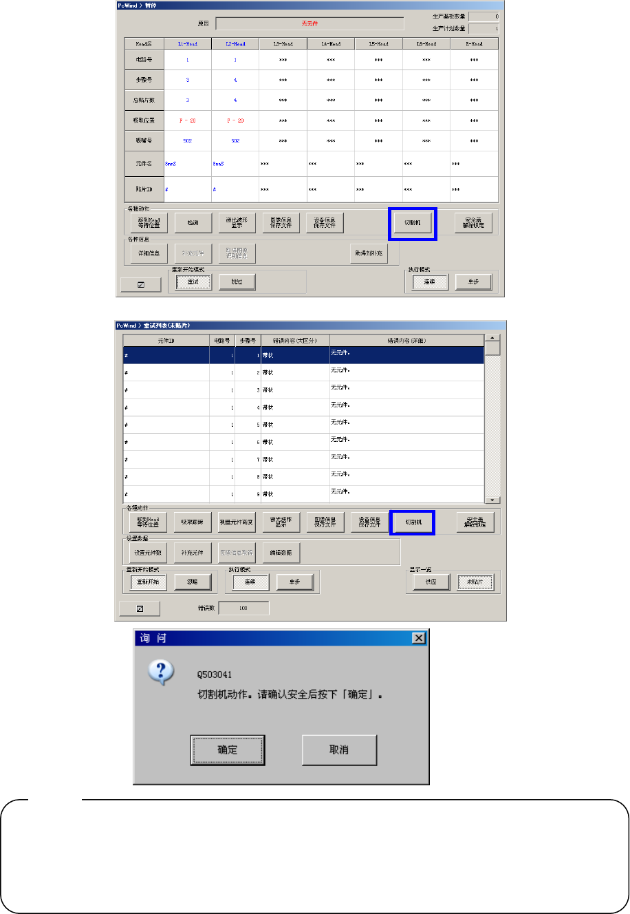 按下[切割机]按钮后,将显示警告信息,此时若按下[确定]即进行切割动作。