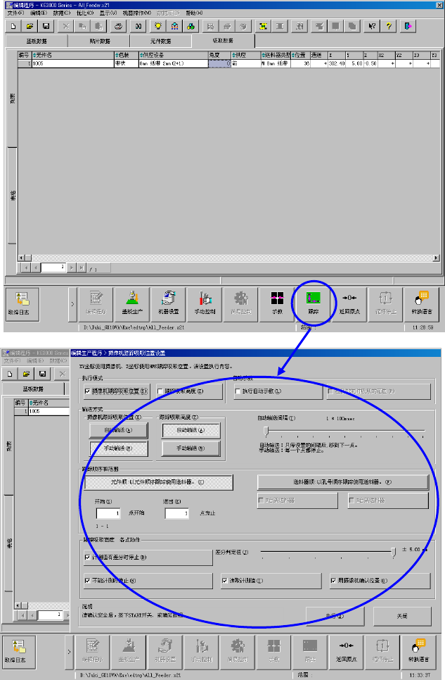 跟踪按钮,将根据已启动的应用程序的光标位置,启动贴片跟踪、吸取跟踪。