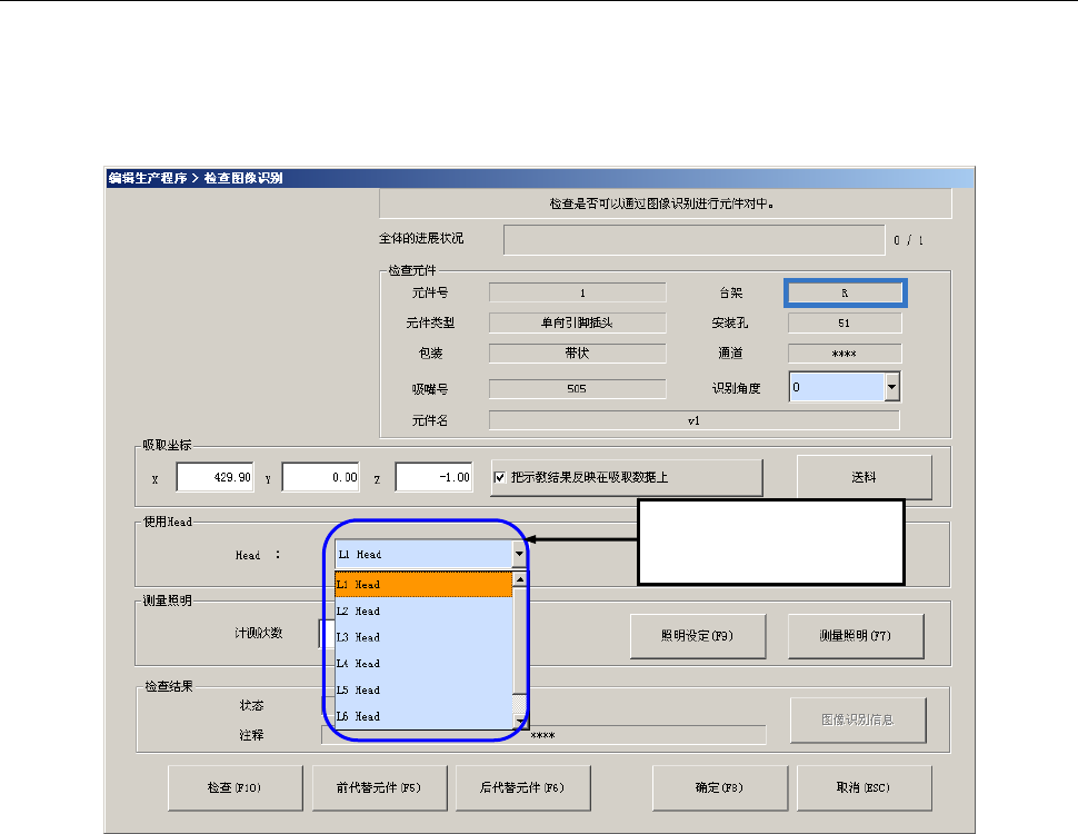 (注)如果是不能适用于 LNC60 Head 的元件时,则用灰色显示出 Head 选择画面,不能选择 Head。