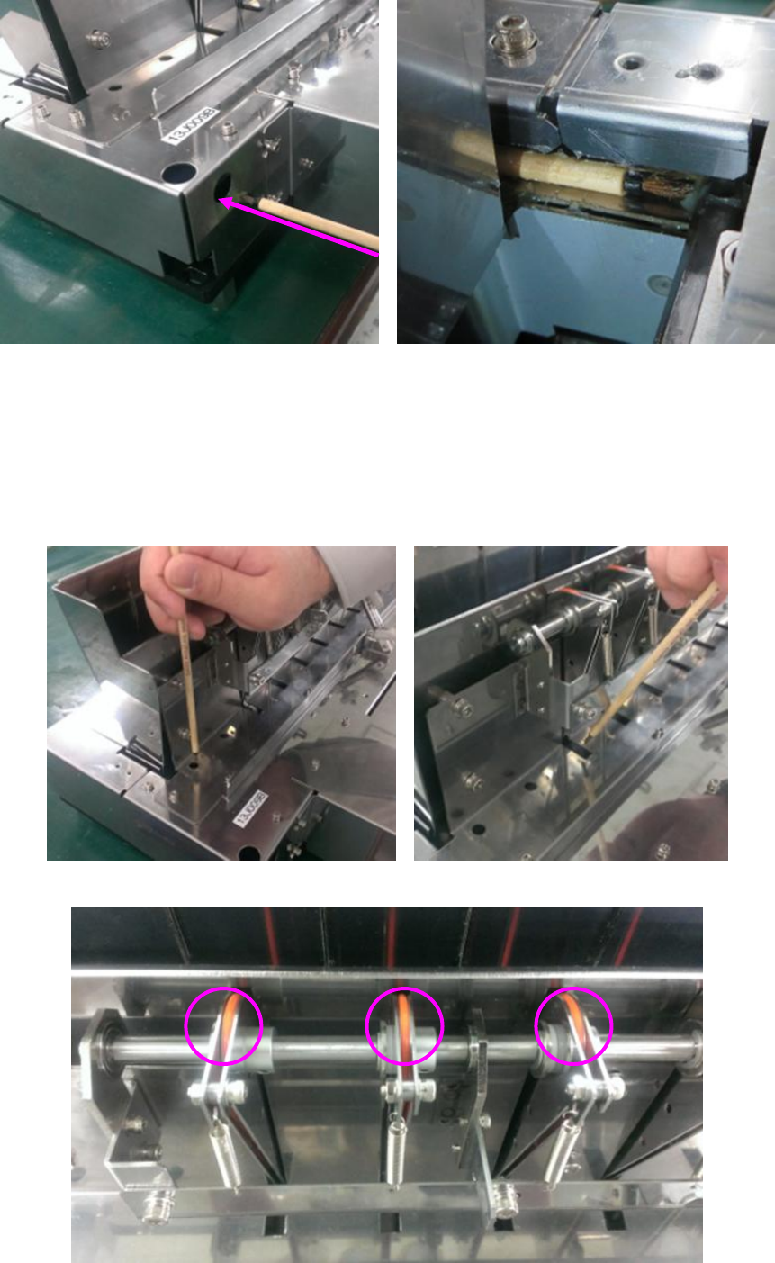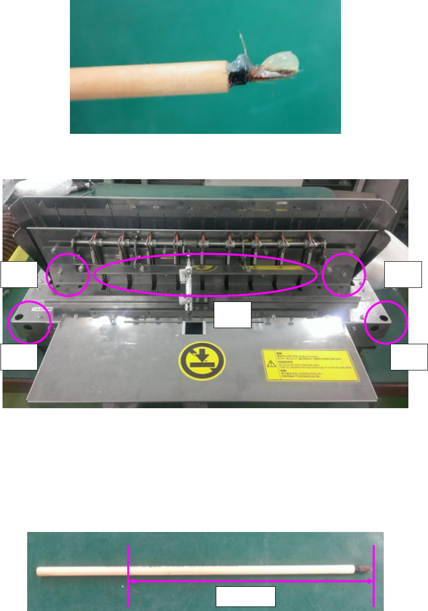 从 A 部孔伸入到 140mm 的位置,如上图所示,即为固定刀与可动刀的接触面。