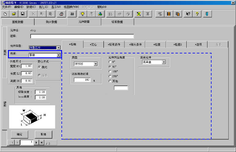 设置“吸嘴号”、“元件吸取真空压”、“LNC60 激光高度”、“元件形状”、“夹式吸嘴数据”。