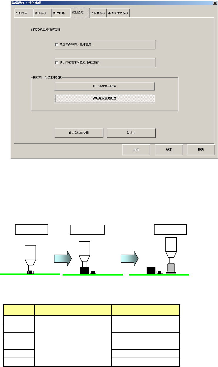 第 1 部 基本篇 第 4 章 制作生产程序 4-139 ( 3 )贴片顺序 指定贴片数据的排列顺序,是维持输入顺序分配,还是换为优化顺序分配。 1) 输入顺序 a )生产程序输入顺分配:不改变贴片数据的排列顺序。 b )优化顺分配 :将贴片数据的排列顺序改为优化顺序。 优化的贴片顺序,通过从菜单栏上选择 “ 优化 / 分割贴片数据 ” 即可浏览。 (在此画面中不能进行编辑。 ) 注意 “ 优化顺分配 ” 是在贴片数据画面上对已经优化的…