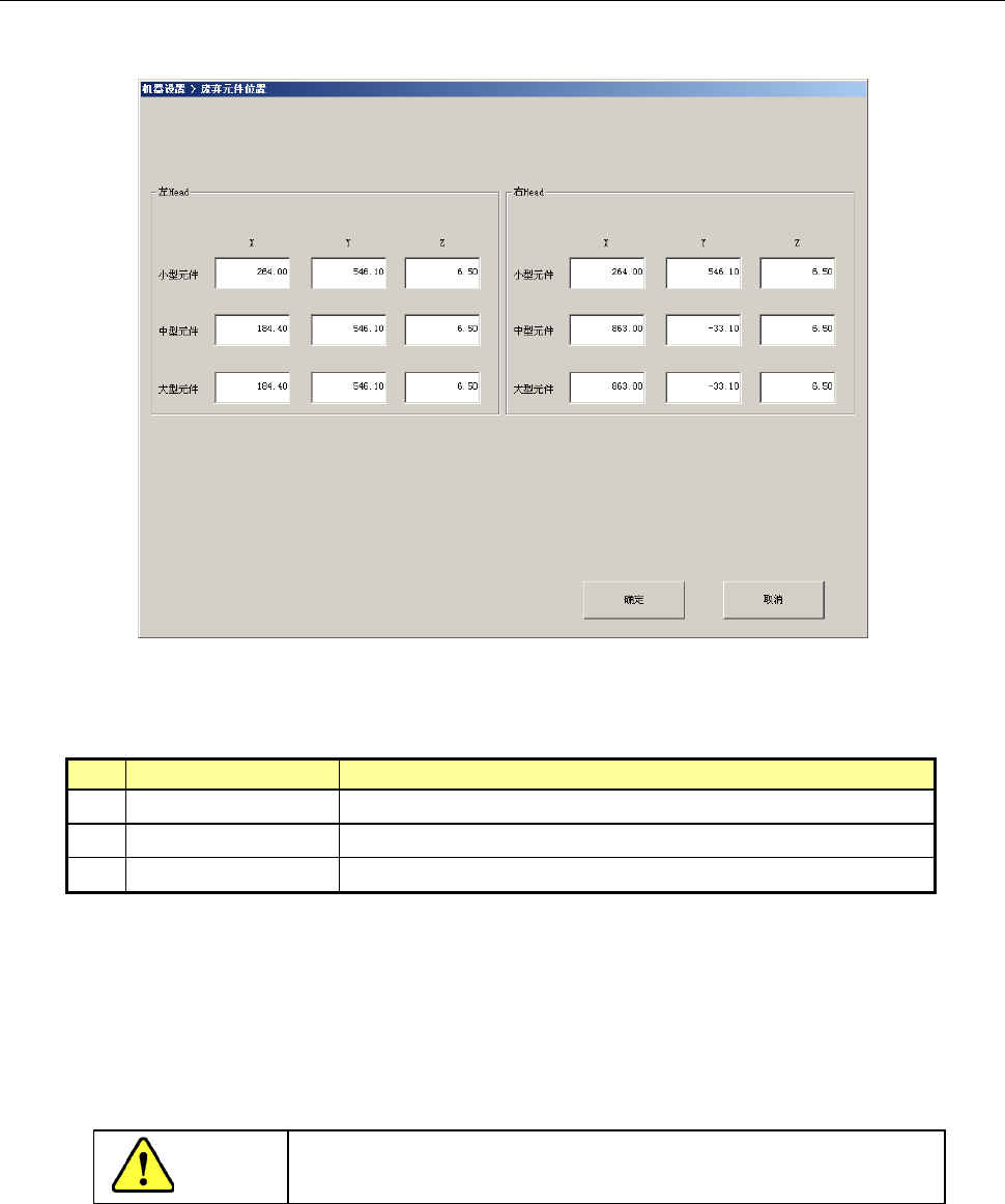 选择元件废弃位置后,将显示如下元件废弃位置设置画面。