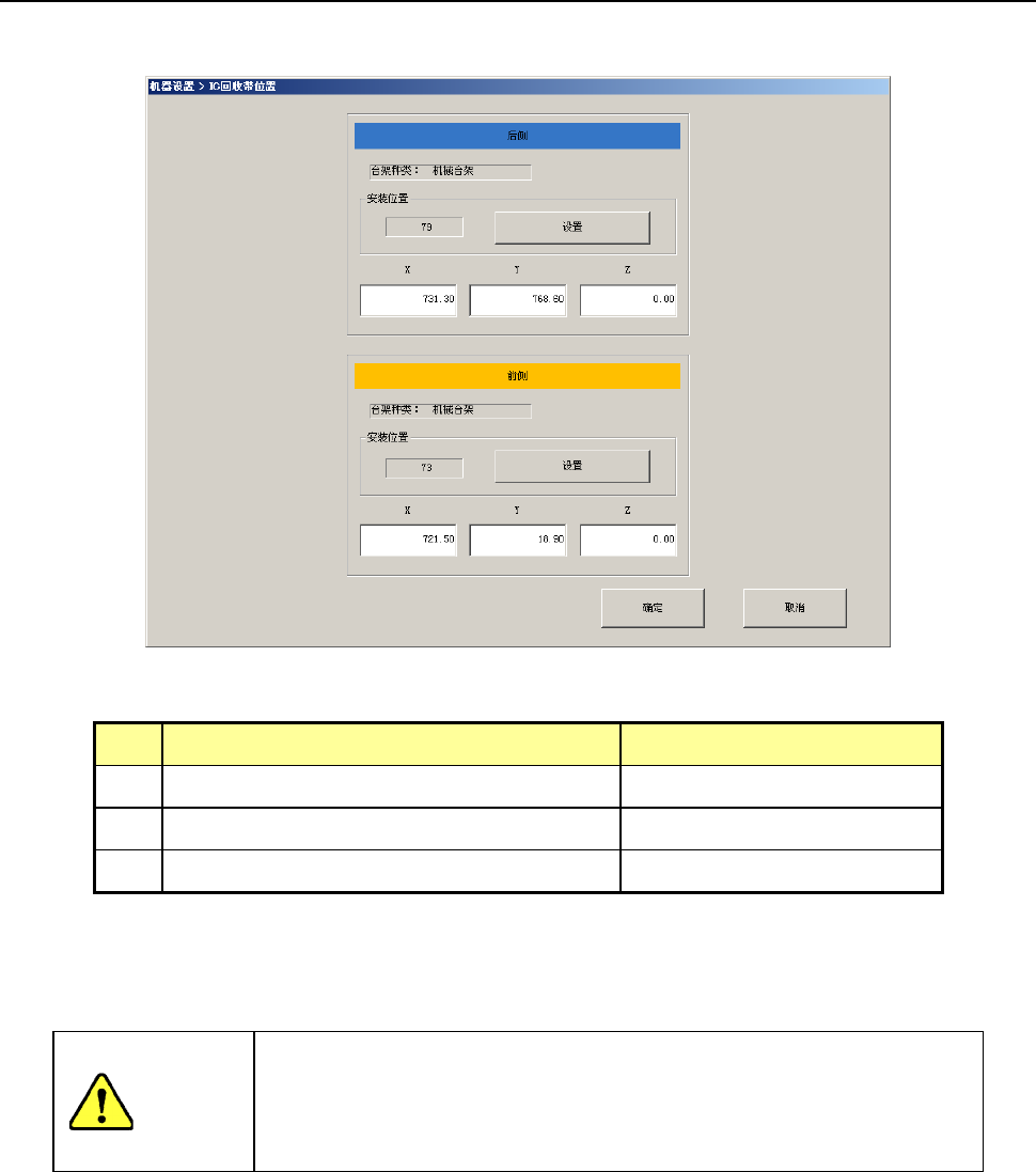 选择IC回收带位置后,会显示如下IC回收带位置设置画面。