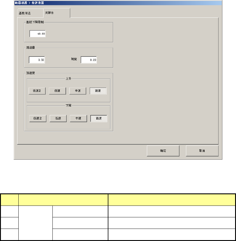基板下降限制 设置支撑台的基板下降限制值。(5~40)