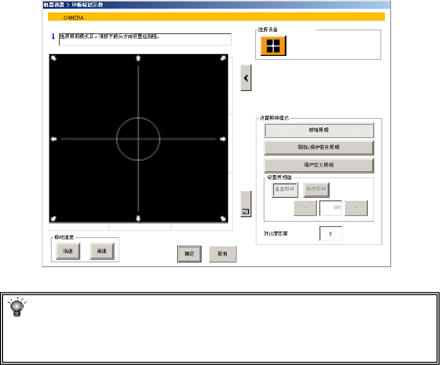 标记相对于基板反映较暗时,请按下选择装置的摄像机按钮。